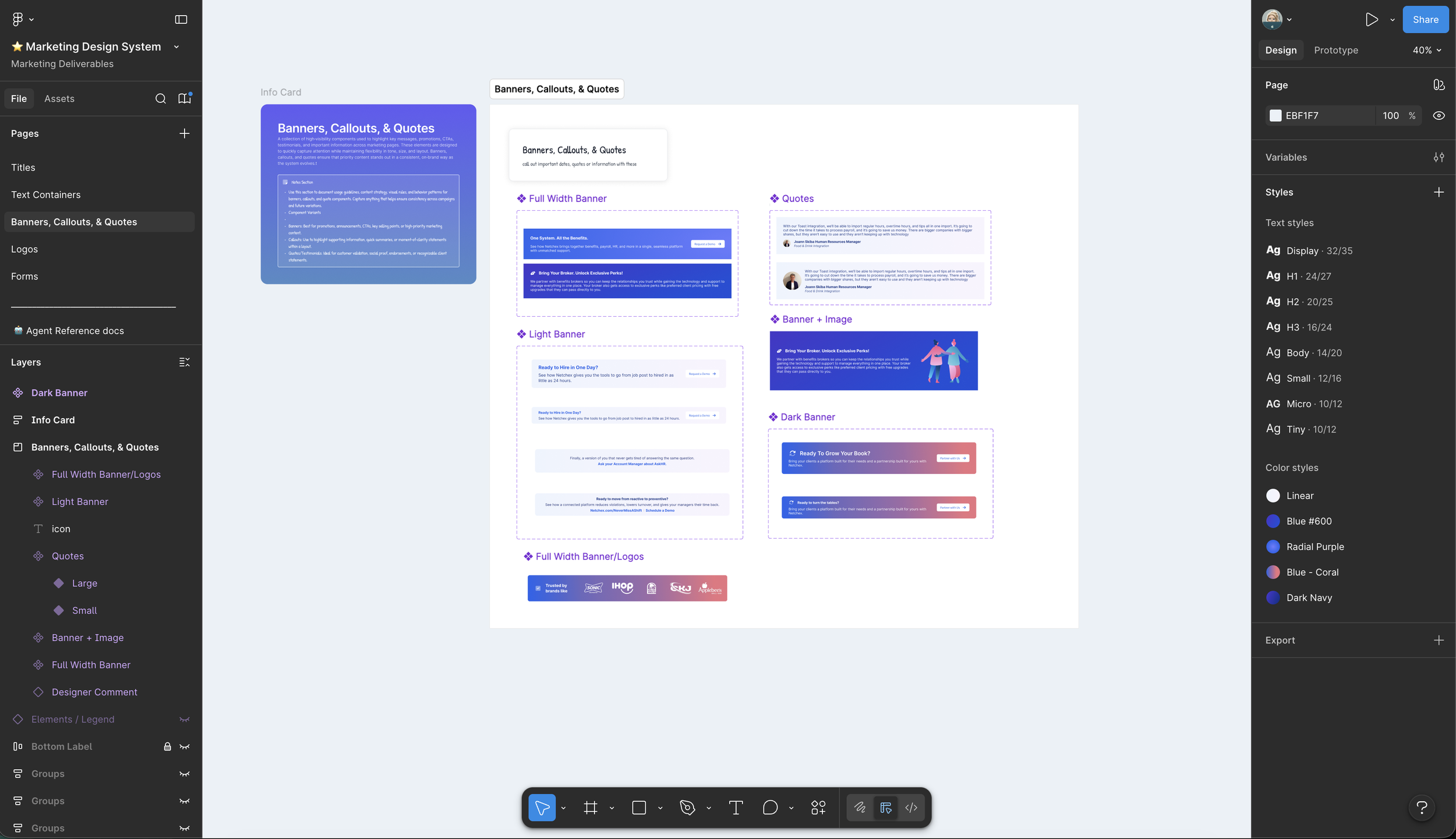 Brand + design system — reads the Figma Marketing Design System, agent reference docs, and 2025 brand guide to extract contrast rhythm and component rules