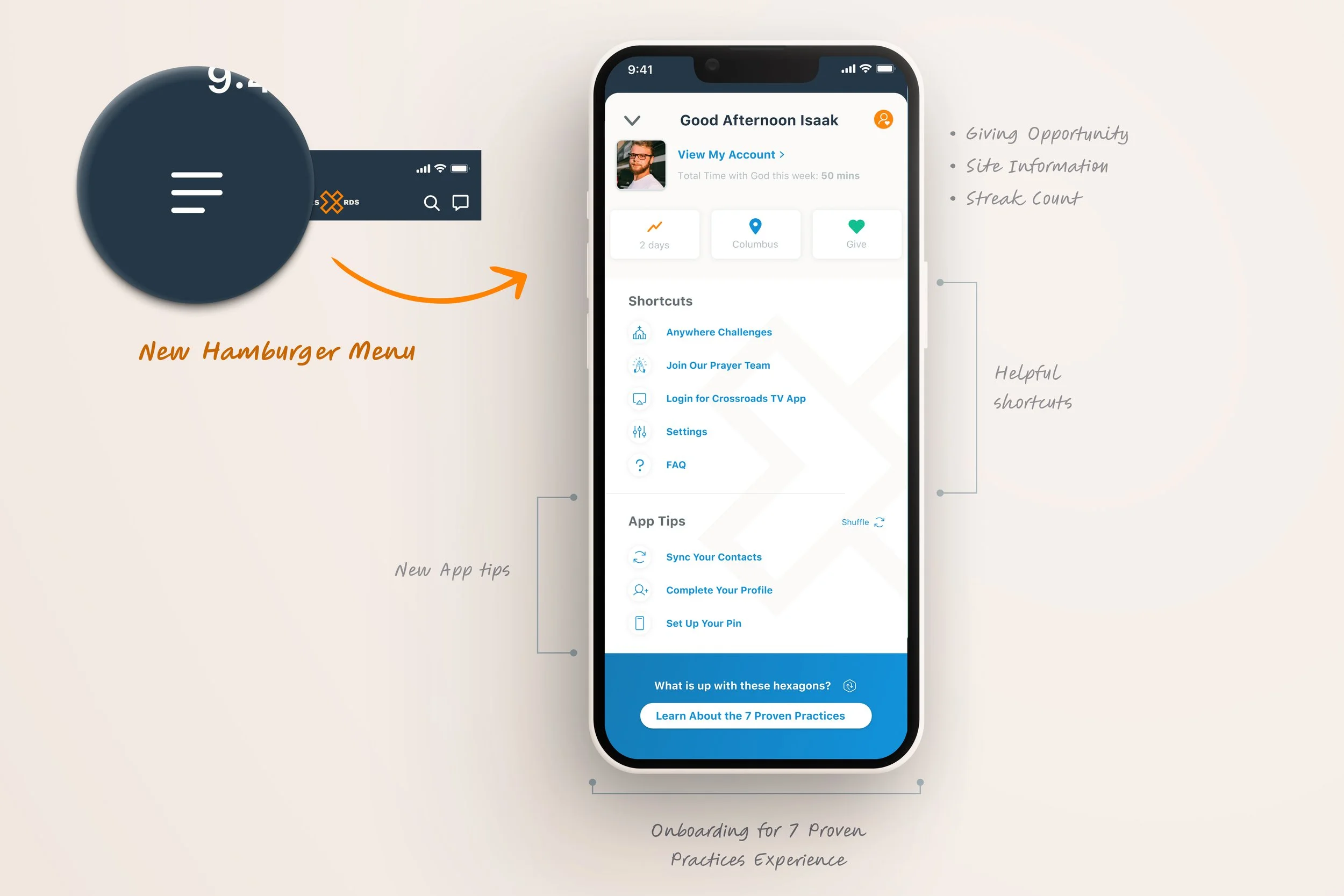 The Crossroads Leadership Team found the app lacked luster and felt it didn't have that “ Crossroads touch”. It had grown bland, lacking the spark of inspiration the internal stakeholders craved.